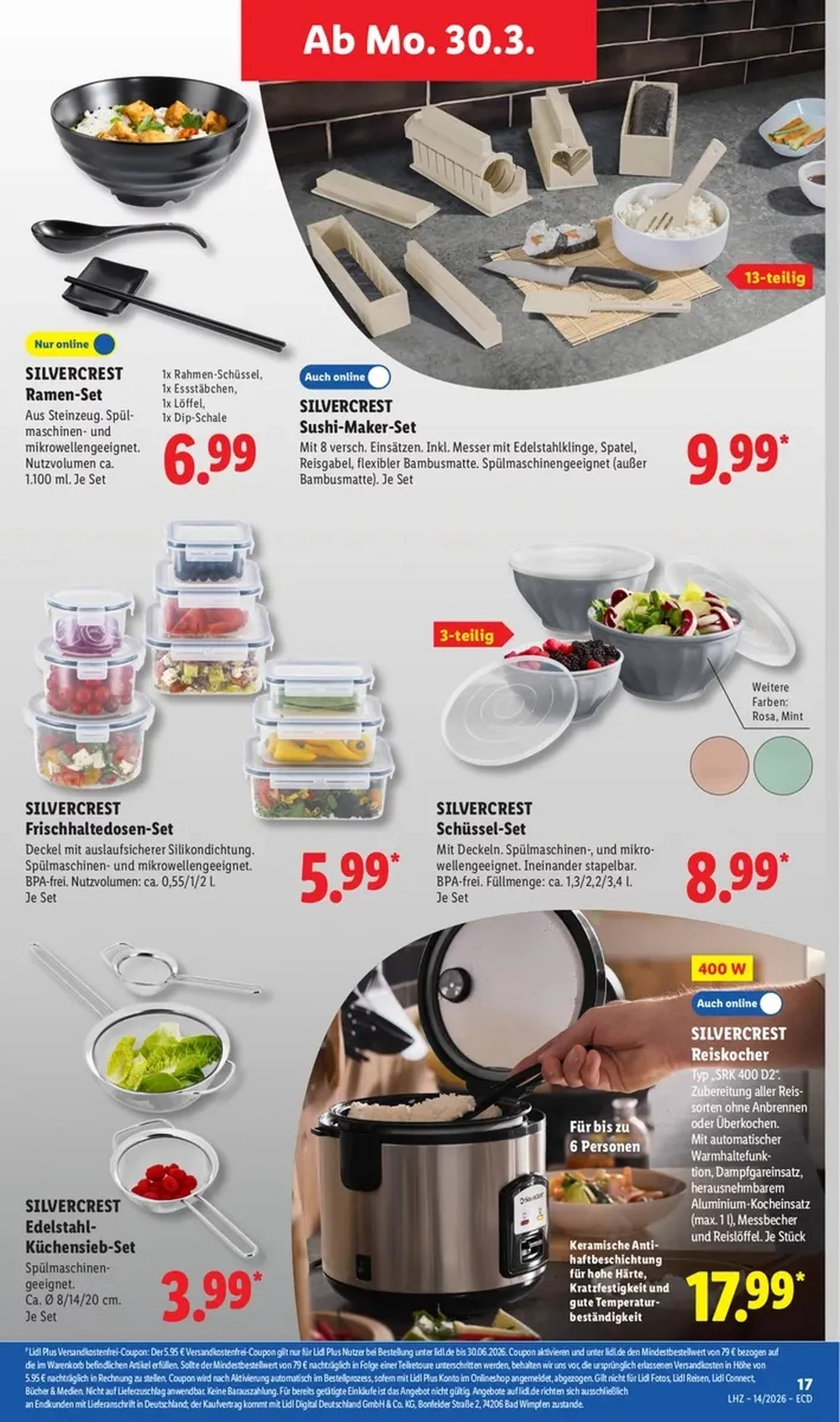 Der Lidl Prospekt 30.03.2026–04.04.2026 zum Blättern 🥂 nächste Woche bietet damit viele günstige Angebote für Technik 📺, Möbel 🪑 und Schlafzimmer-Produkte 🛏️. Wer beim Online-Shopping sparen möchte 💙, sollte die neuen Lidl Deals unbedingt durchblättern und sich die besten Aktionen der Woche sichern.