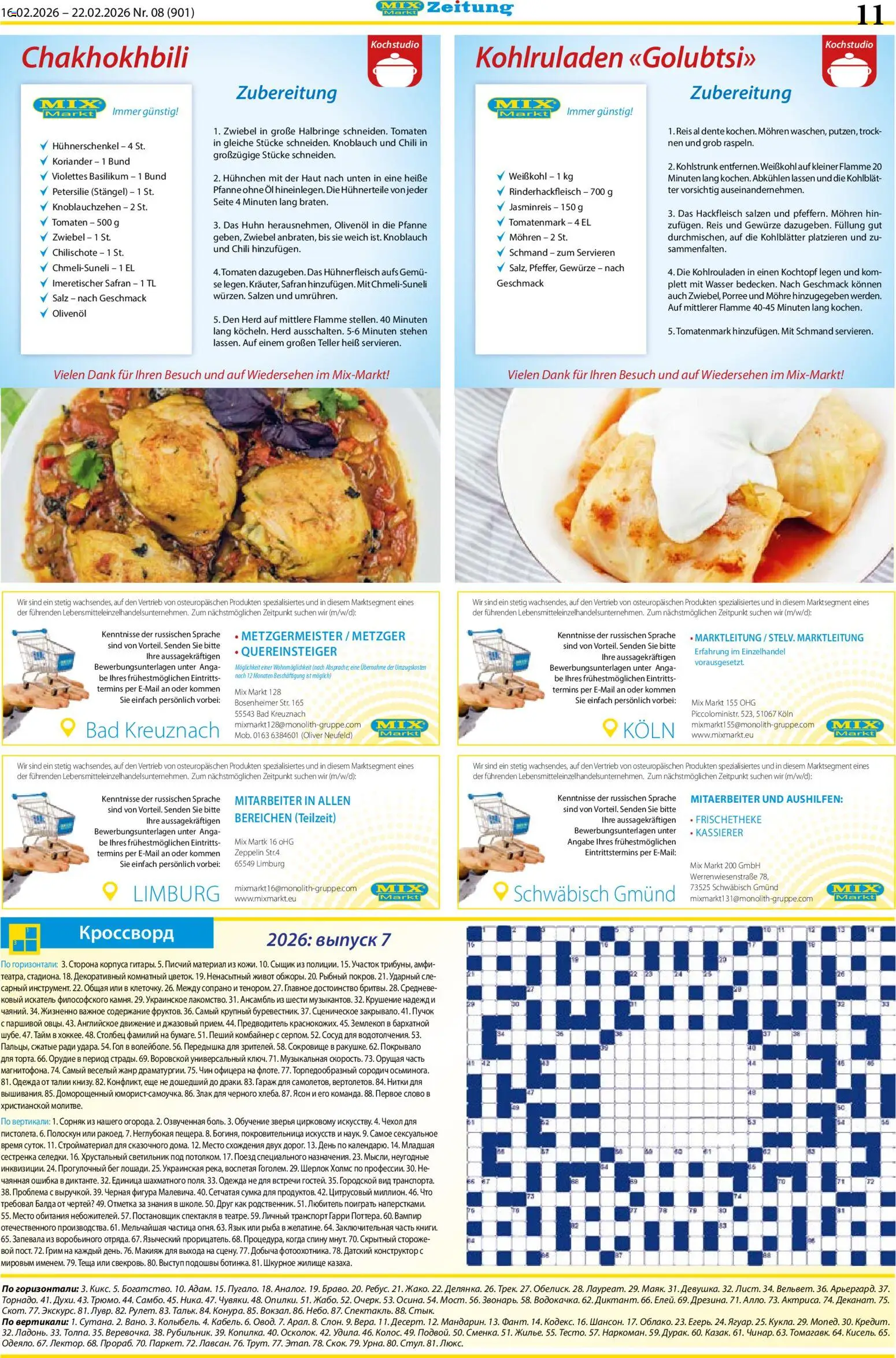 Auf dem Bild sieht man die Titelseite der Mix Markt Zeitung mit auffälligem Valentinstag-Design in Rot-Tönen, dekoriert mit Herzen und Besteck. ❤️🍽️ Darunter präsentieren sich viele Produkte mit großen Preisetiketten: Fleischwaren, Tee, Konserven, Süßigkeiten, Tiefkühlprodukte wie Pelmeni sowie Spirituosen. Die Rabatte sind deutlich hervorgehoben, sodass Sie die besten Angebote diese Woche sofort erkennen können. 📦🥟🍷
