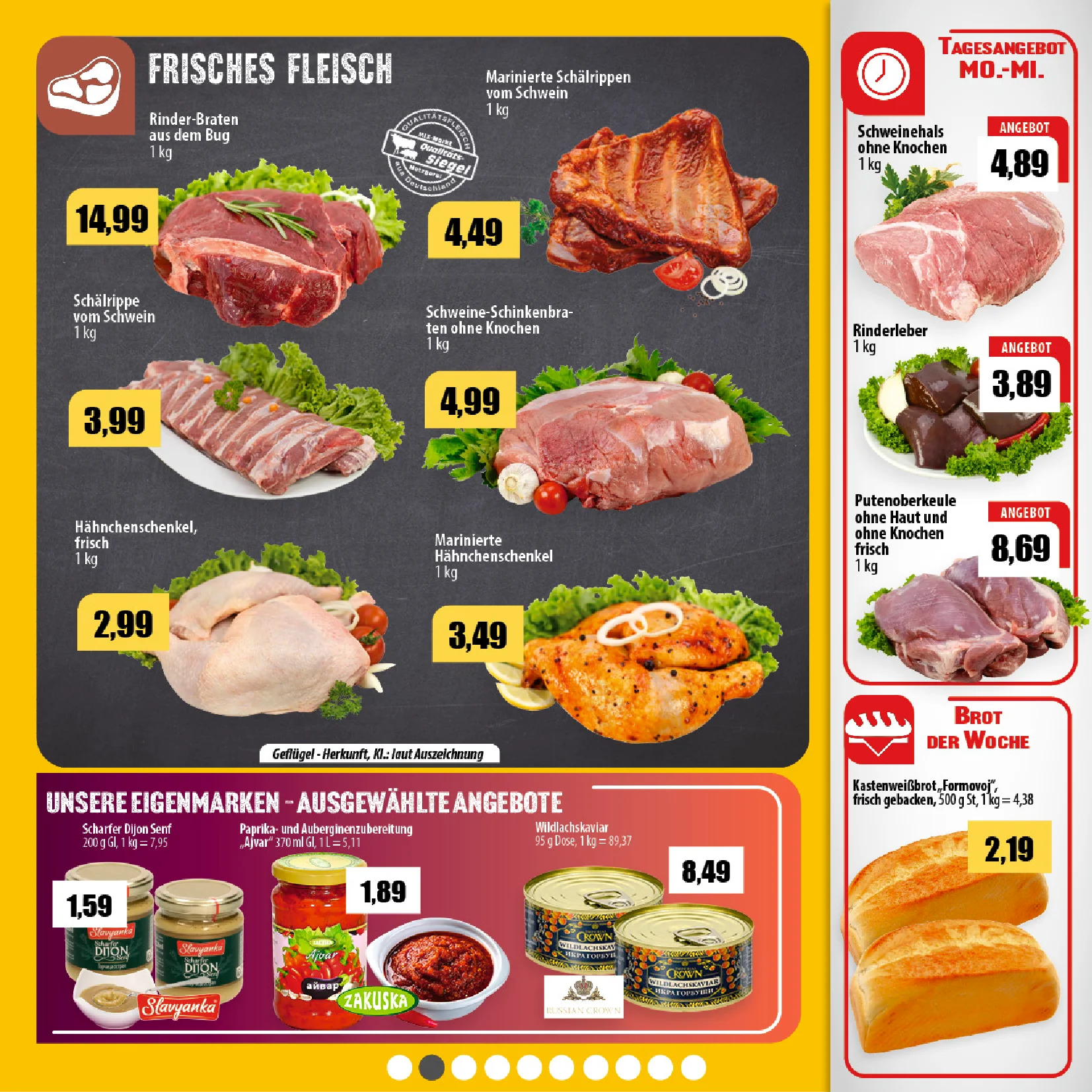 Das Mix Markt Prospekt zum Blättern informiert übersichtlich über Wochenangebote, Sonderaktionen und Top-Preise. Gerade Fleisch Angebote nächste Woche sind für viele Haushalte interessant, da Mix Markt für frische Ware, osteuropäische Spezialitäten und günstige Preise bekannt ist. ✔️