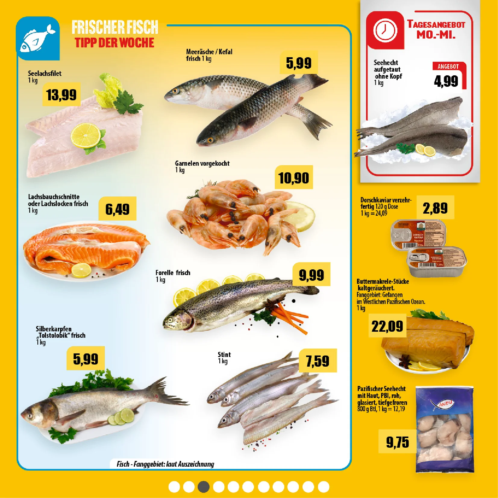 Im aktuellen Mix Markt Prospekt stehen vor allem frische Fisch- und Fleischprodukte im Fokus, die perfekt für eine gesunde und abwechslungsreiche Ernährung geeignet sind. 🐟✨ Auf dem Bild sehen Sie eine große Auswahl an hochwertigen Produkten: frischer Spiegelkarpfen, saftige Seehecht-Steaks sowie aromatischer Hering – alles ideal für traditionelle und moderne Gerichte. 🍽️