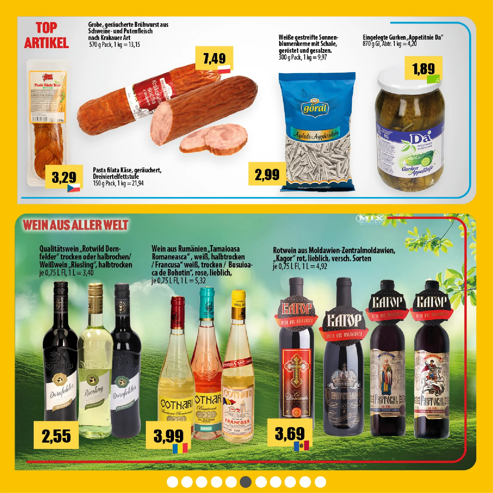 Der aktuelle Prospekt von Mix Markt überzeugt mit attraktiven Fleischaktionen und beliebten internationalen Produkten. Besonders hervorzuheben sind die saftigen Schweinegrieben (250 g) für nur 4,19 €, die sich perfekt als herzhafter Snack oder Beilage eignen 🥓✨.