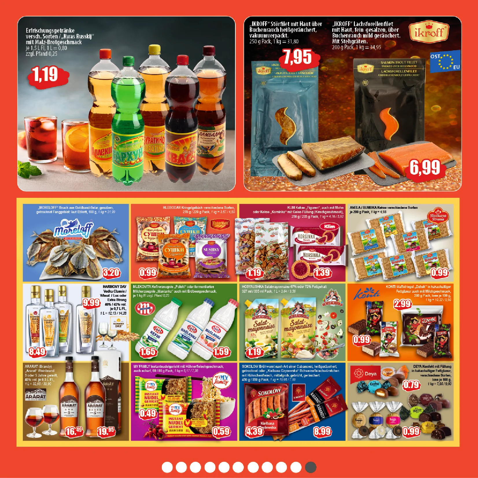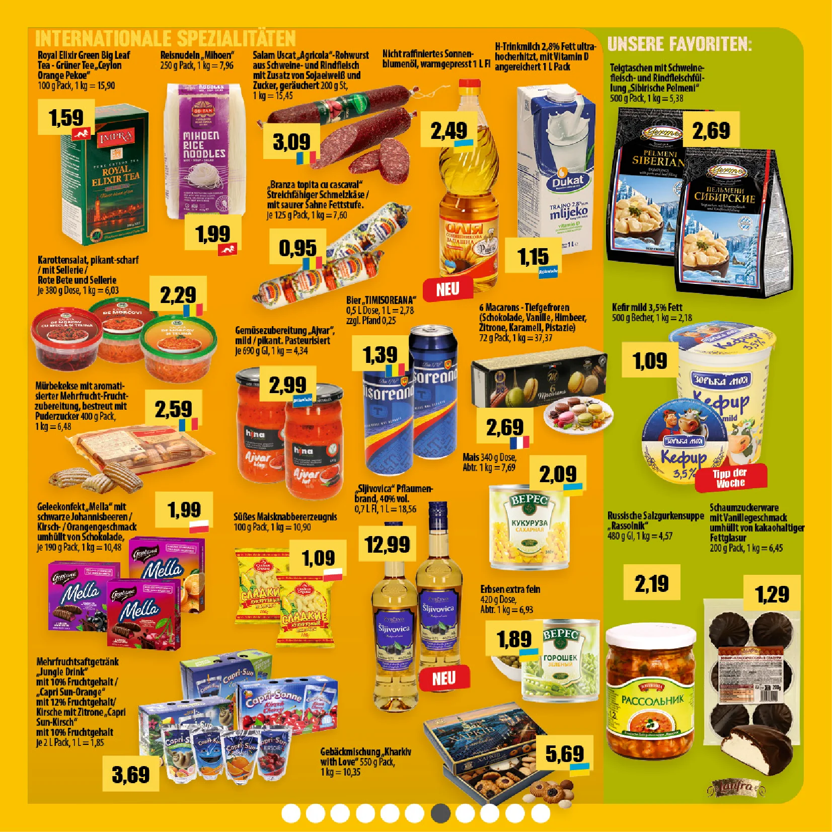 Für den Alltag bietet der Prospekt außerdem praktischen schwarzen Tee von PG Tips (300 Beutel) für 12,59 € ☕ sowie eine feine Auswahl internationaler Weine 🍷🌍. Darunter halbtrockene Weiß- und Roséweine aus Rumänien ab 4,69 € und kräftige Rotweine aus Georgien für 6,29 €.