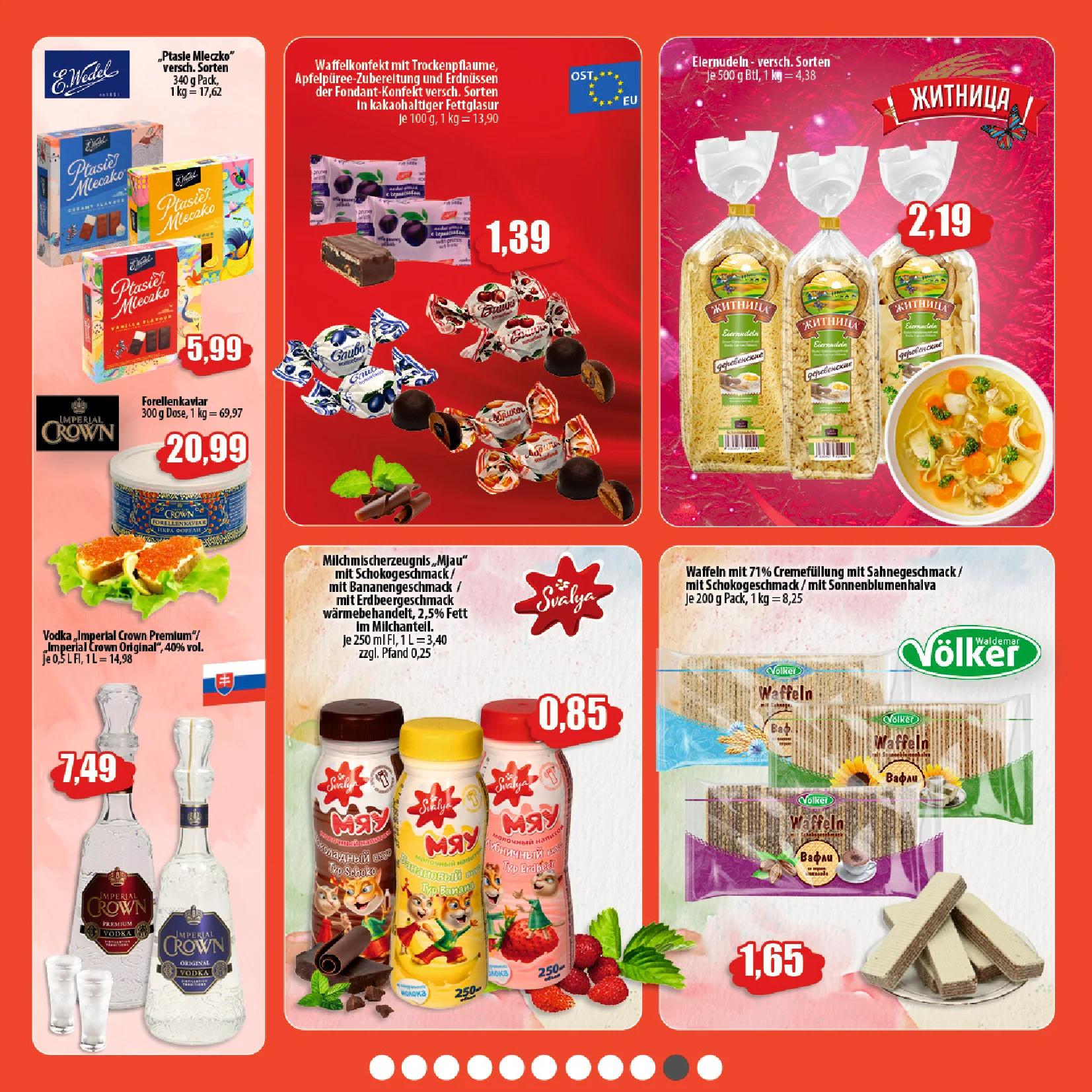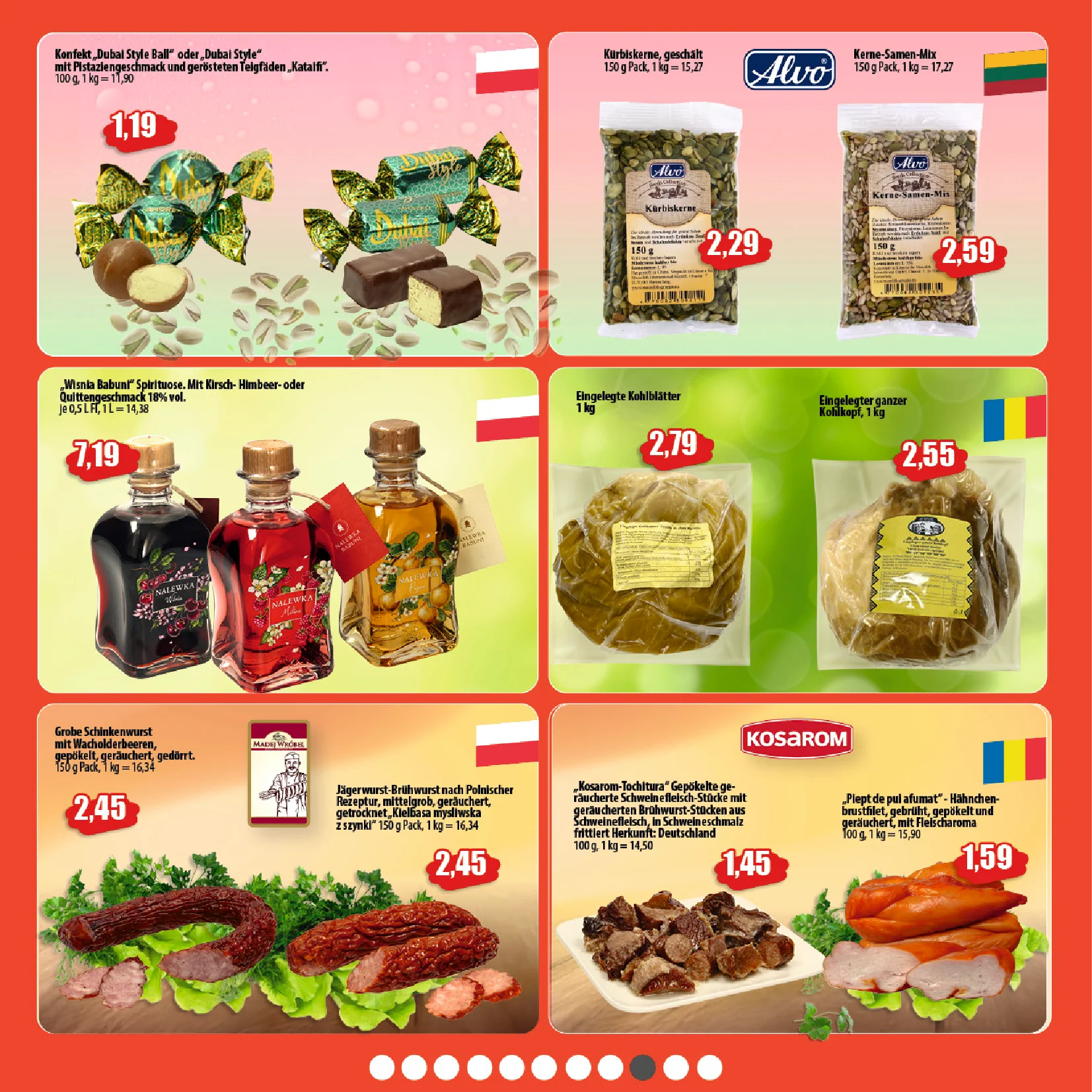 Auch für Feinschmecker gibt es etwas: Die leckere Waffeltorte „Da“ mit Kakao und Erdnüssen ist für nur 1,95 € erhältlich 🍰💛, während die klassische Mayonnaise von Winiary für 3,39 € ideal für Fleischgerichte und Salate ist 🥗👌.