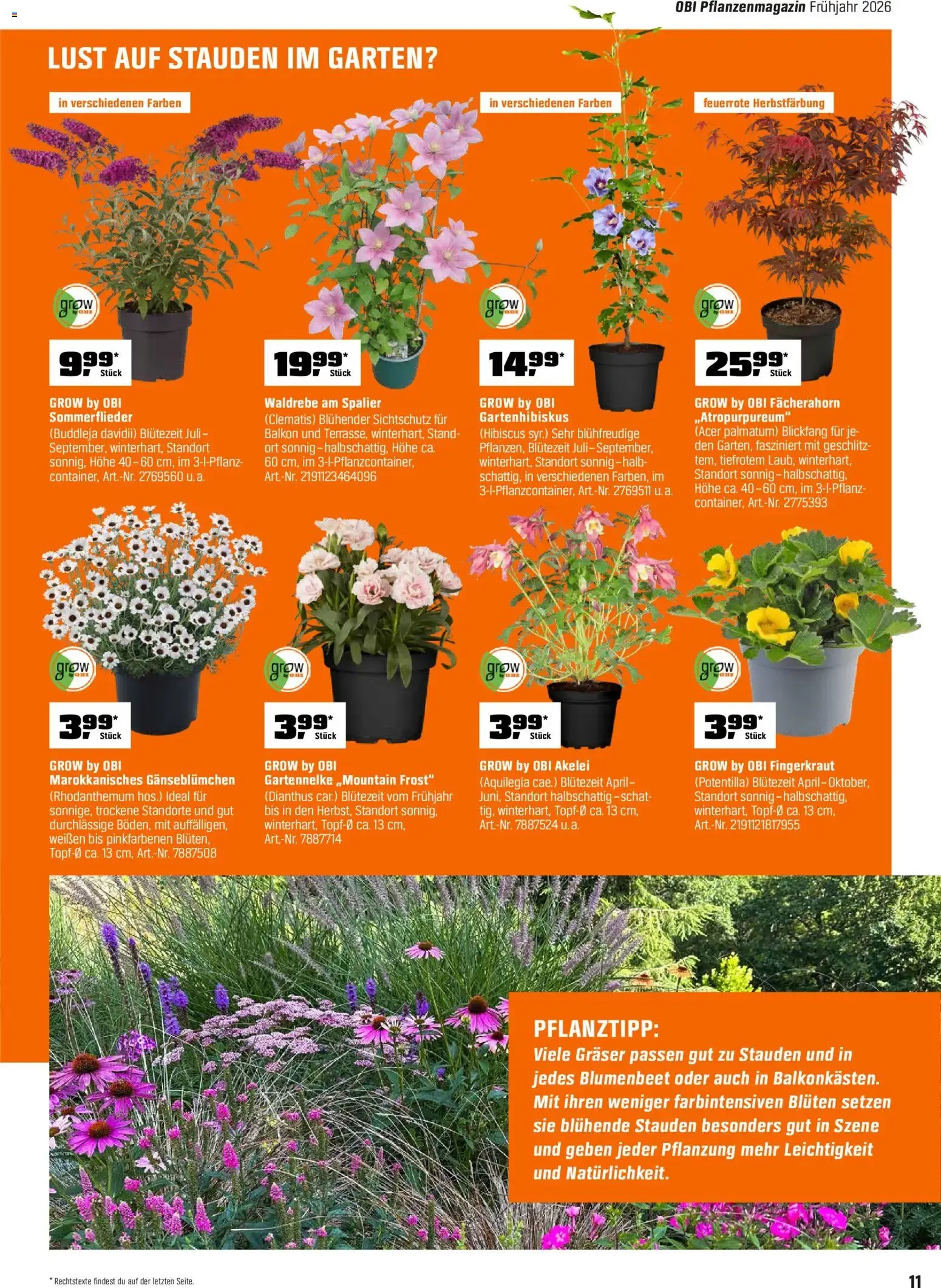 Das aktuelle OBI Pflanzenmagazin Frühjahr 2026 bietet alles, was das Gärtnerherz begehrt. Unter dem Motto „Freude schenken zu Ostern“ finden Sie liebevoll bepflanzte Zink-Schalen (12,99 €), elegante Schmetterlings-Orchideen (9,99 €) und farbenfrohe Zimmerhortensien oder Glockenblumen für unter 7,00 €. Diese blühenden Highlights eignen sich perfekt als Dekoration oder Geschenk für die Feiertage. 🌺🎁