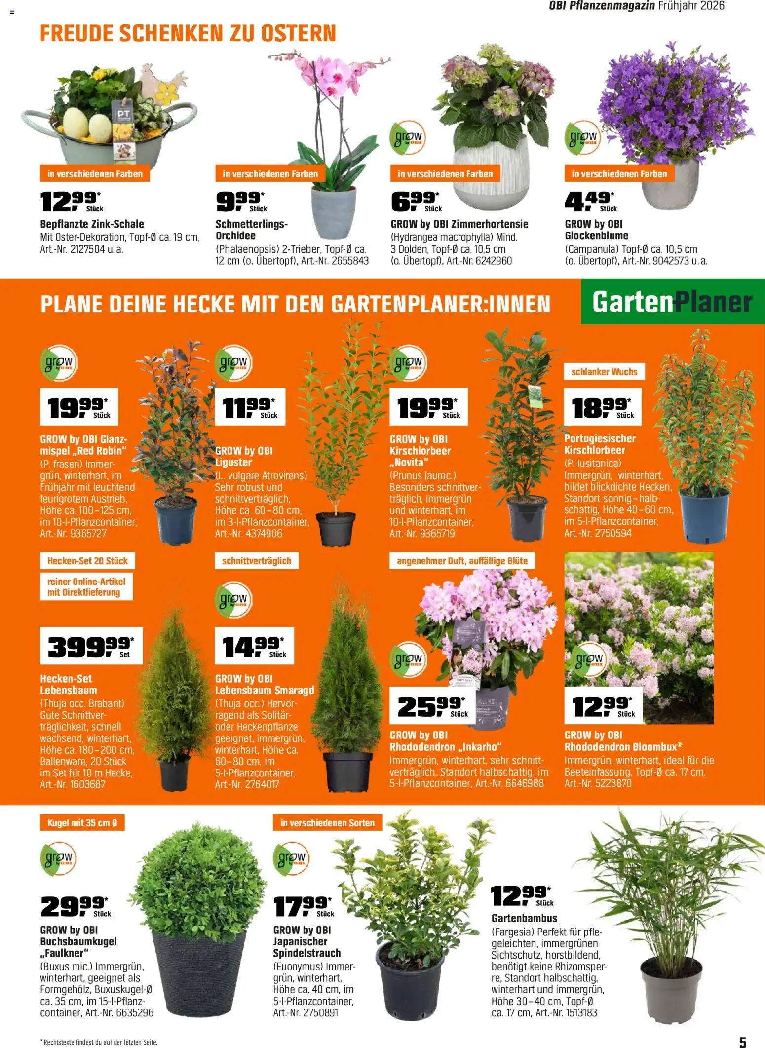 Für die langfristige Gestaltung bietet OBI mit dem Gartenplaner eine riesige Auswahl an Heckenpflanzen. Ob winterharter Glanzmispel „Red Robin“ (19,99 €), robuster Liguster (11,99 €) oder Kirschlorbeer – hier ist für jeden Sichtschutz gesorgt. Besonders praktisch ist das Lebensbaum-Heckenset für 399,99 €, das direkt online bestellt werden kann. Ergänzt wird das Sortiment durch formschöne Buchsbaumkugeln, Japanischen Spindelstrauch und pflegeleichten Gartenbambus für eine grüne Wohlfühloase. 🌳🏡