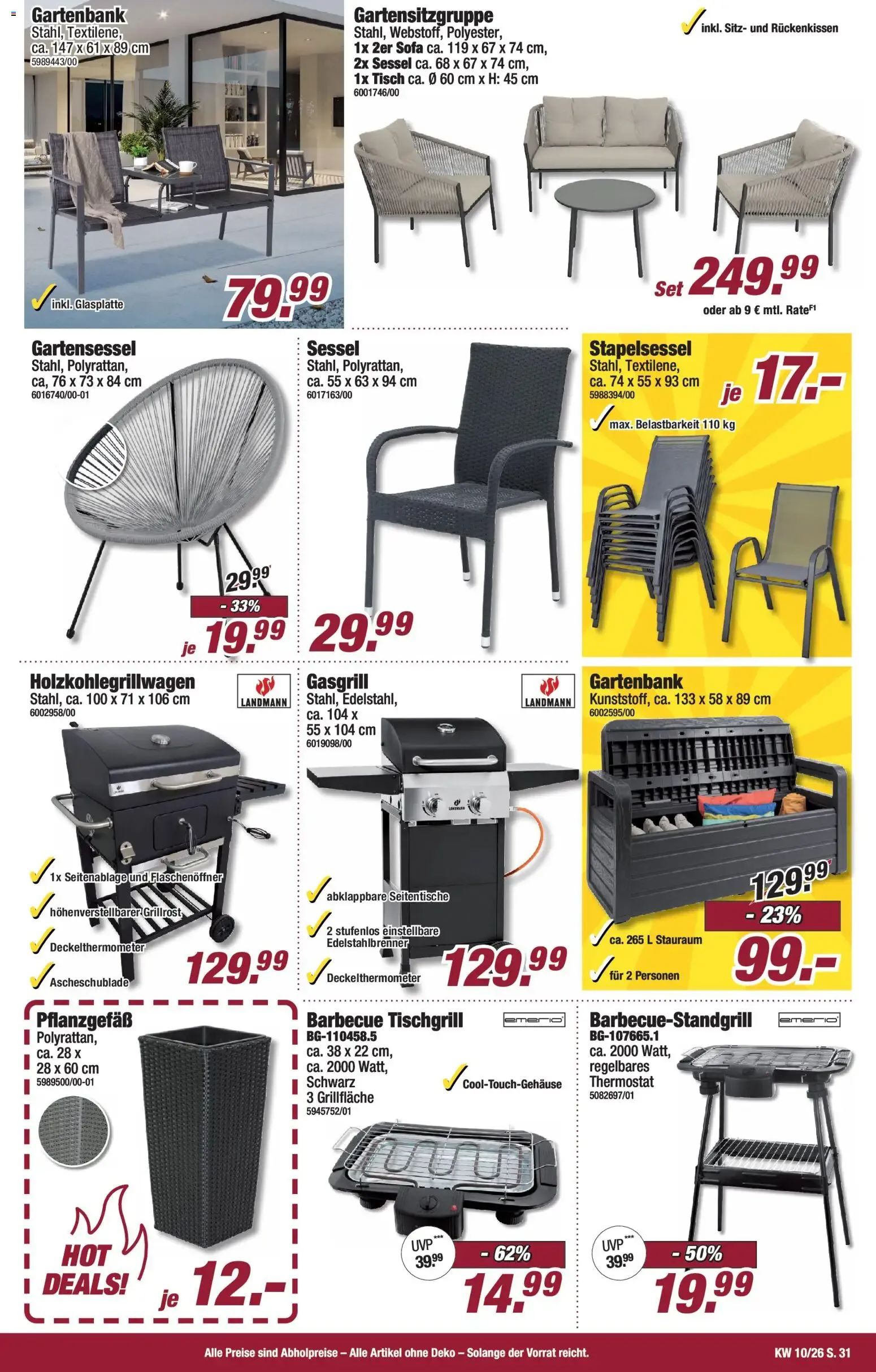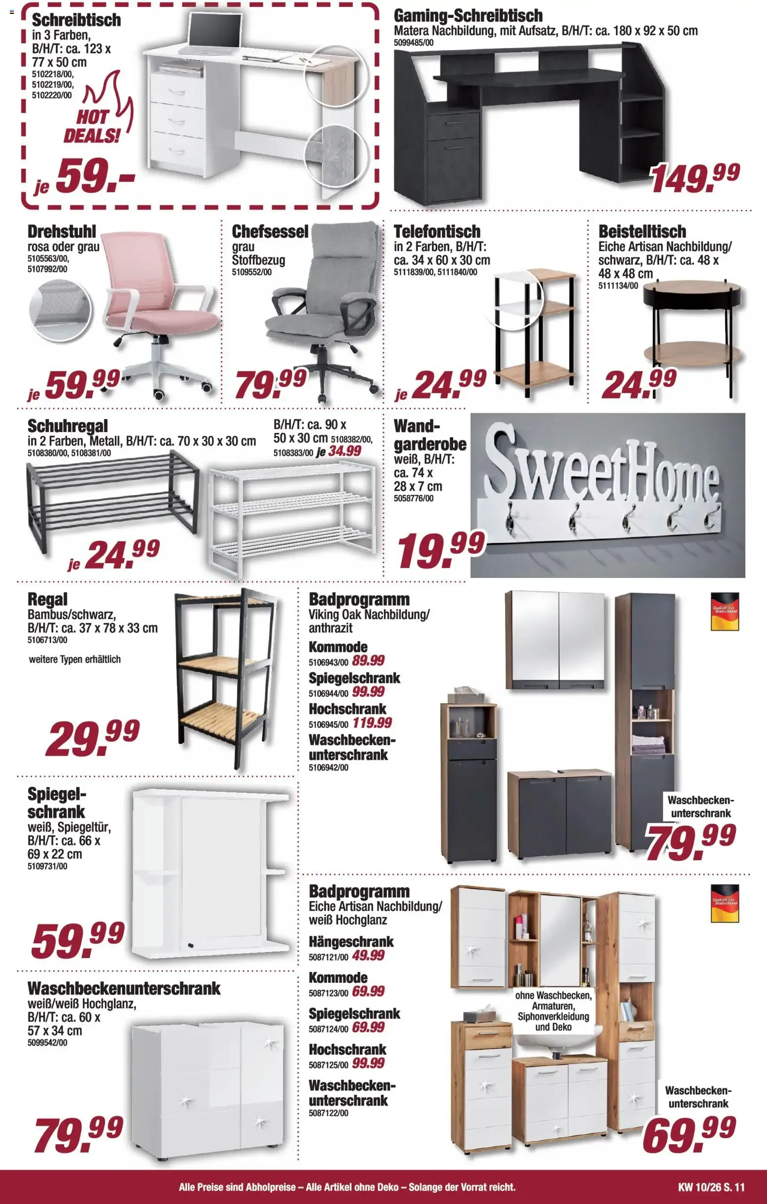 Auch praktische Möbel sind im Prospekt zu finden: Eine stilvolle Wandgarderobe in Artisan Eiche/Schwarz für nur 39 € 🧥 sowie ein komplettes Lounge-Sofa-Set mit Tisch und Bänken für 450 € 💶. Ideal für Essbereich oder offene Wohnküche mit trendigem Industrie-Look.