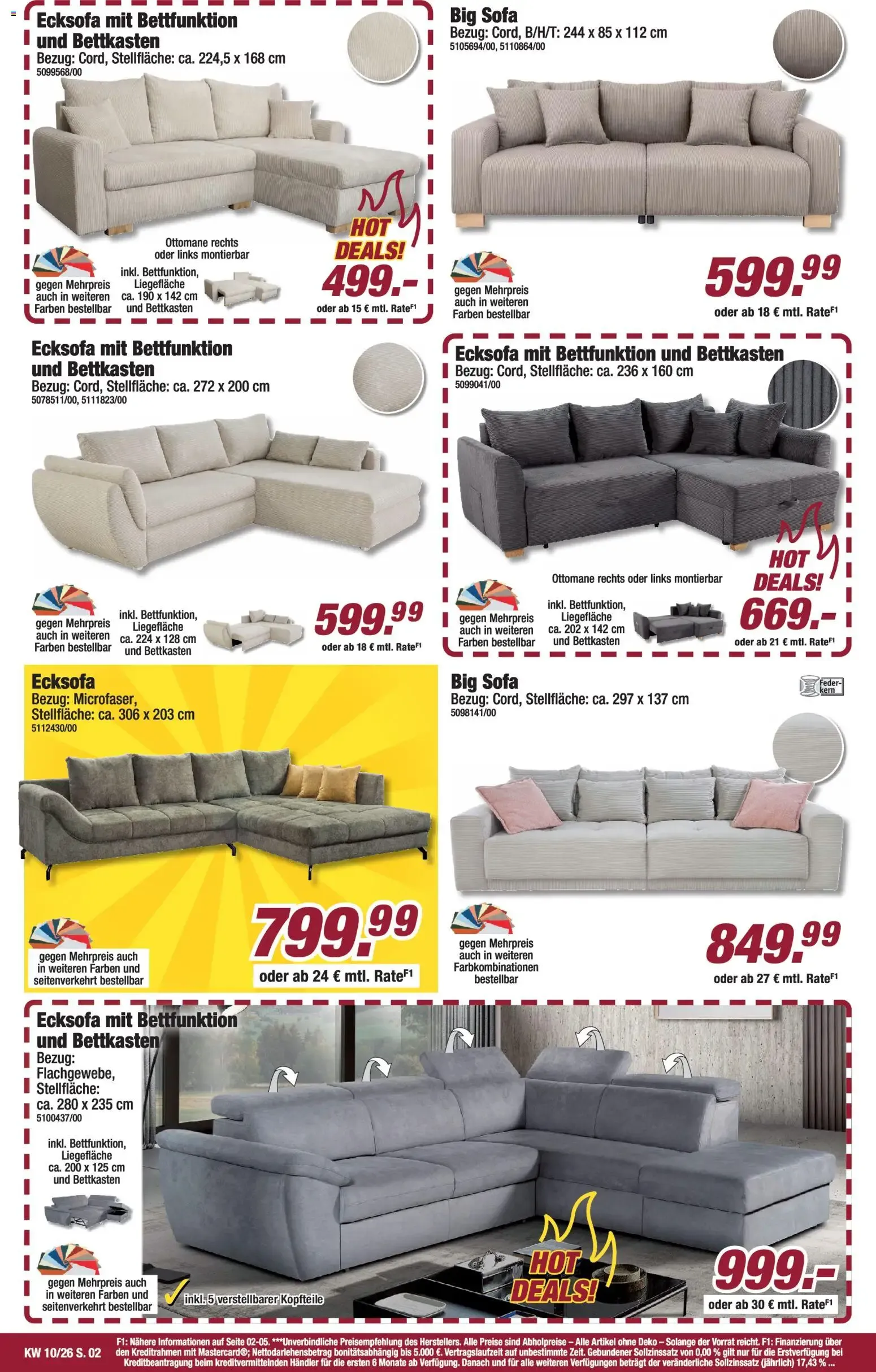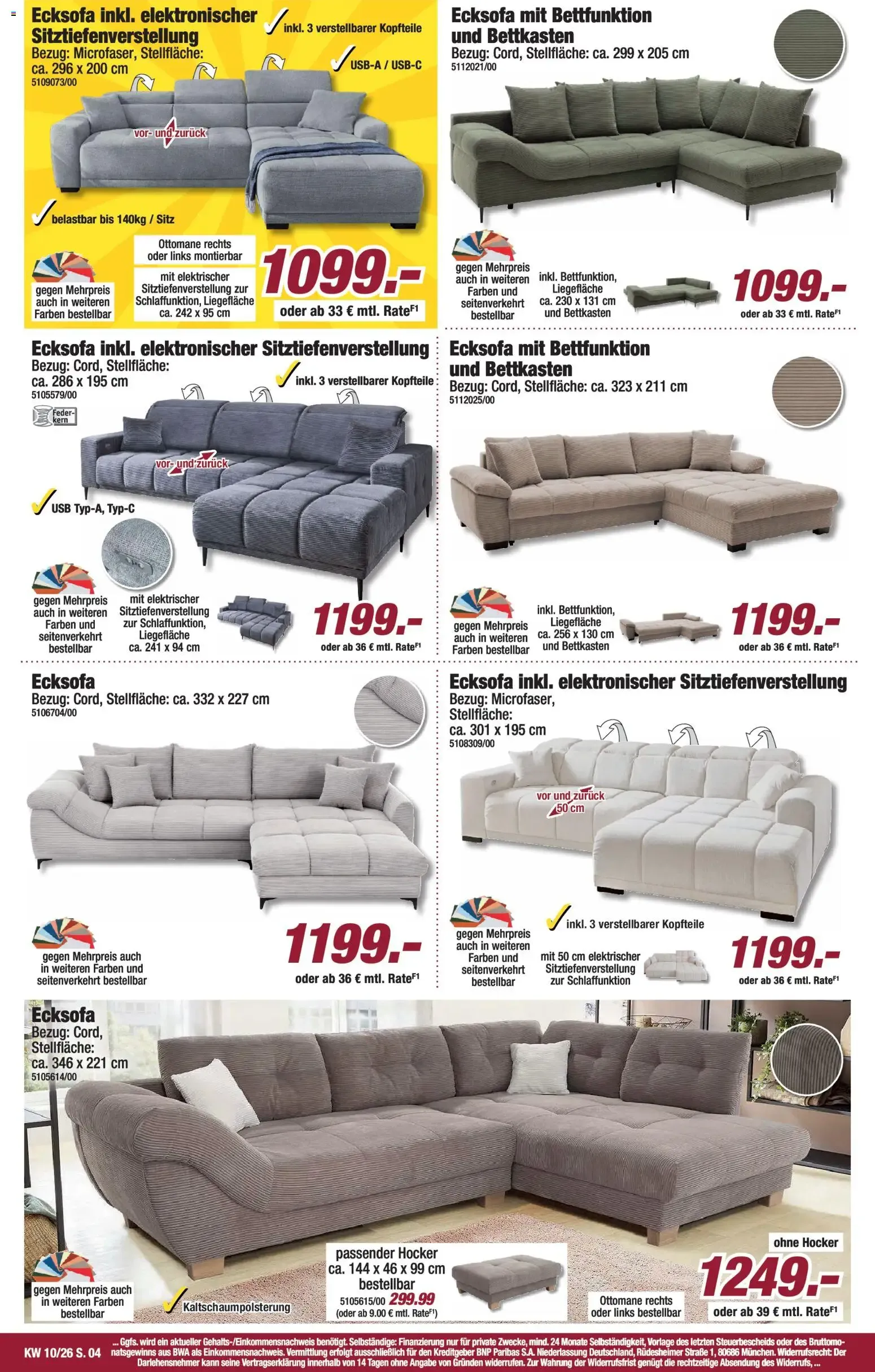 Für dein Wohnzimmer gibt es ein Ecksofa mit Bettfunktion und Bettkasten 🛏️ zum Aktionspreis von 399 €. Die großzügige Liegefläche und die montierbare Ottomane rechts oder links sorgen für Flexibilität und Komfort. Der helle Cord-Bezug wirkt modern und gemütlich zugleich.