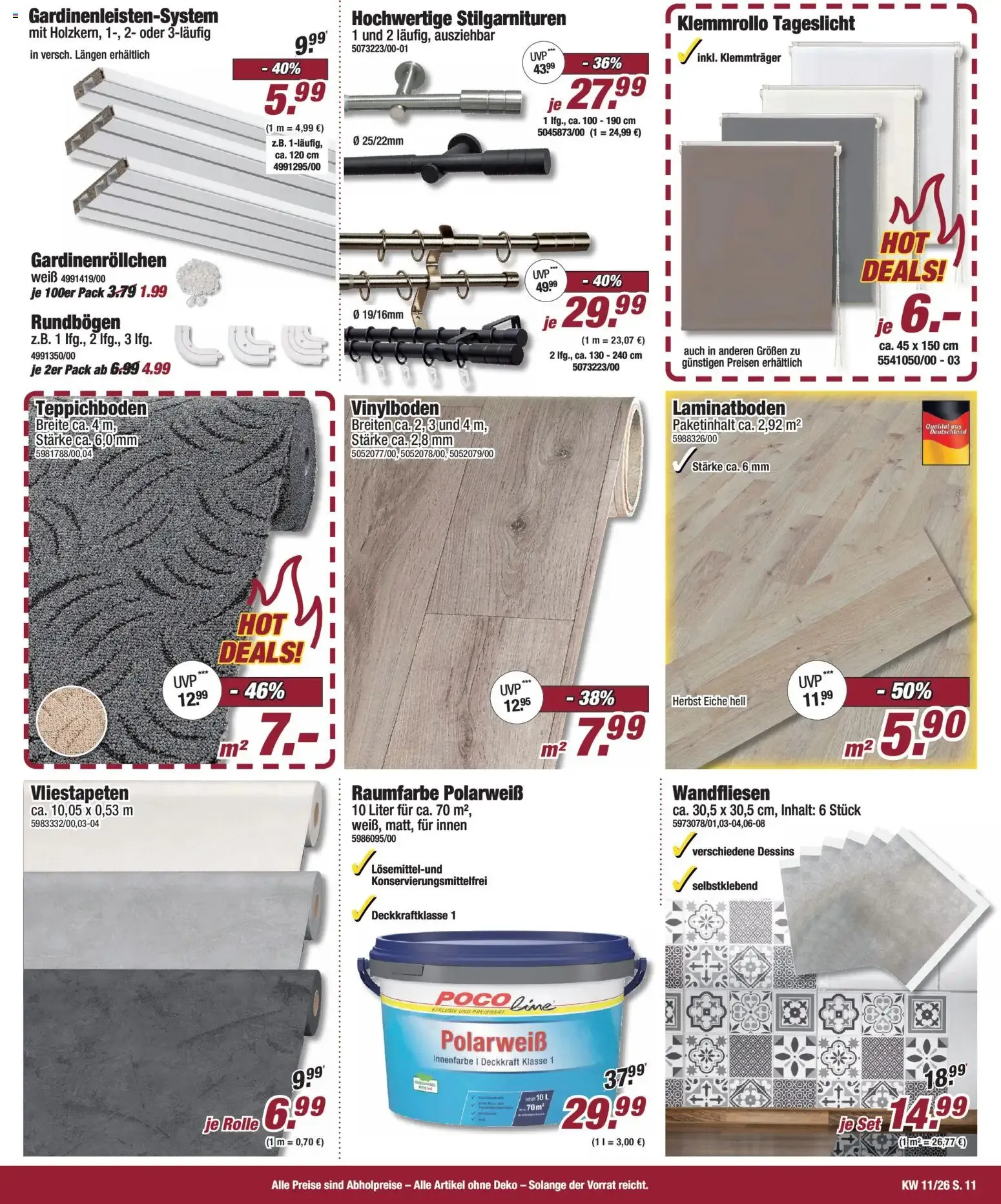 Im unteren Bereich des Prospekts werden außerdem Laminat- und Vinylböden gezeigt. 🏠 Diese sind besonders pflegeleicht und modern und starten preislich schon ab 3,99 € pro m². Damit lassen sich Räume günstig renovieren und optisch aufwerten.