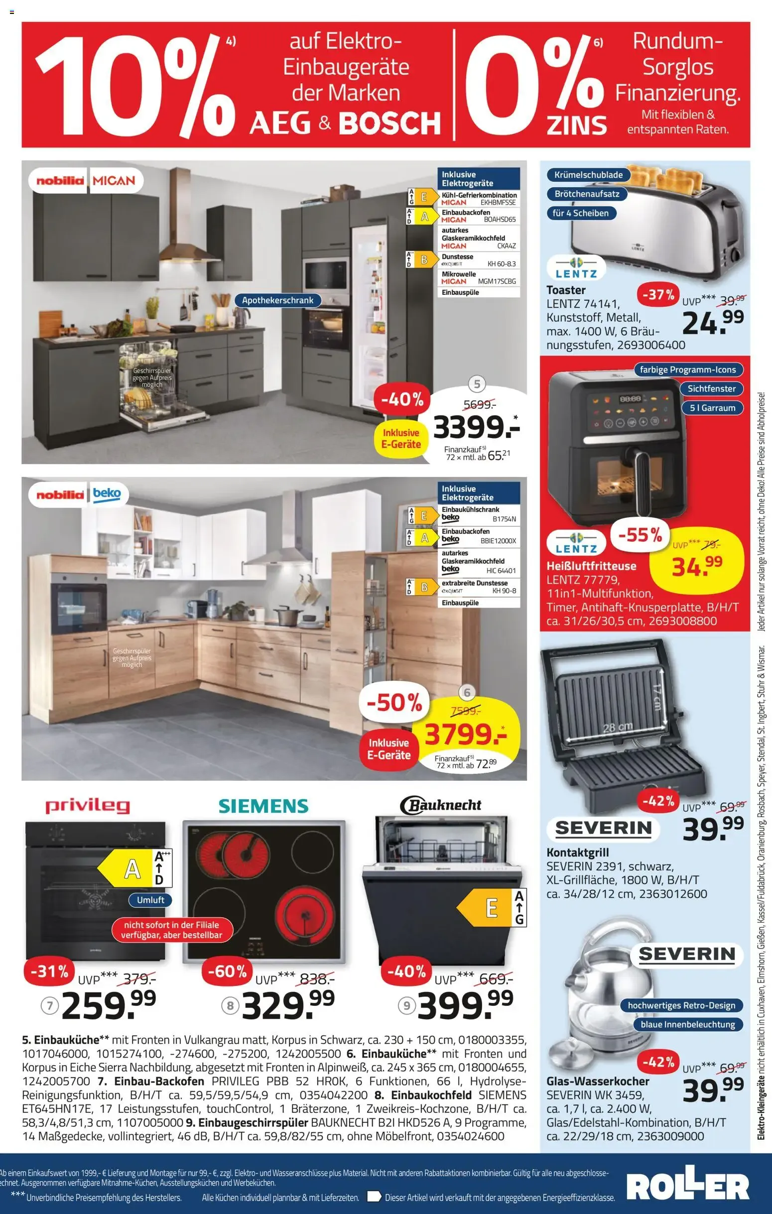Das Möbelhaus ROLLER präsentiert in seinem aktuellen Katalog unschlagbare Angebote für Ihr Zuhause. Ein absolutes Highlight ist der Rabatt von 10 % auf Elektro-Einbaugeräte der Top-Marken AEG und Bosch sowie die attraktive 0 % Zins-Finanzierung. Im Fokus stehen moderne Einbauküchen von Nobilia: Die stilvolle Küche in Vulkangrau matt inklusive E-Geräten ist bereits für 3399,- € erhältlich, während das Modell in Eiche Sierra Nachbildung mit satten 50 % Rabatt für nur 3799,- € angeboten wird. 🏠🔥